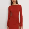 This knit mini dress in a rich Sangre shade delivers bold style with everyday comfort. Designed with flowing bell sleeves and a sleek side slit this dress offers movement and visual appeal while maintaining wearability. The knit fabric provides stretch and softness making it ideal for casual outings evening plans or styled-down events. Its mini length adds a youthful edge while the side slit enhances ease of movement. The Sangre color adds vibrancy making this dress a standout choice without feeling overdone. Pair it with heels for a confident look or boots for relaxed styling. Designed for repeat wear this dress blends comfort modern design and confident color into one versatile piece.